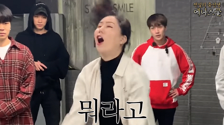 상황설명: 에나선생님(무용과, 코미디언)이 개그아이돌 코쿤애들 안무봐주러옴