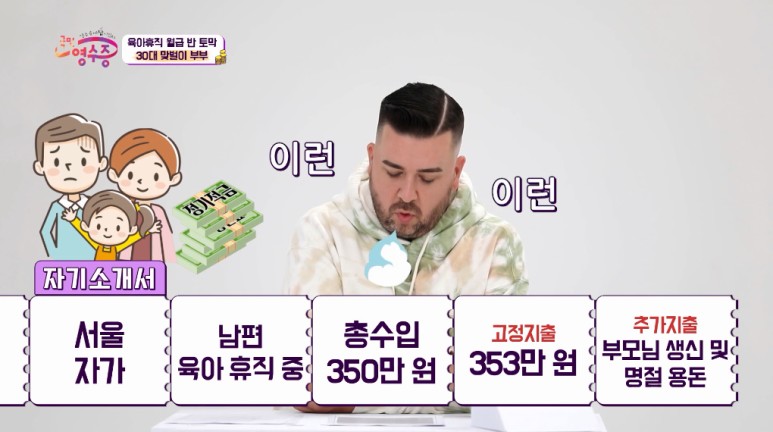 남편의 육아휴직으로 벌이가 350으로 갑자기 줄었다고 함