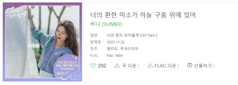 는 소녀시대 써니가 부른 너의밤이되어줄게 OST