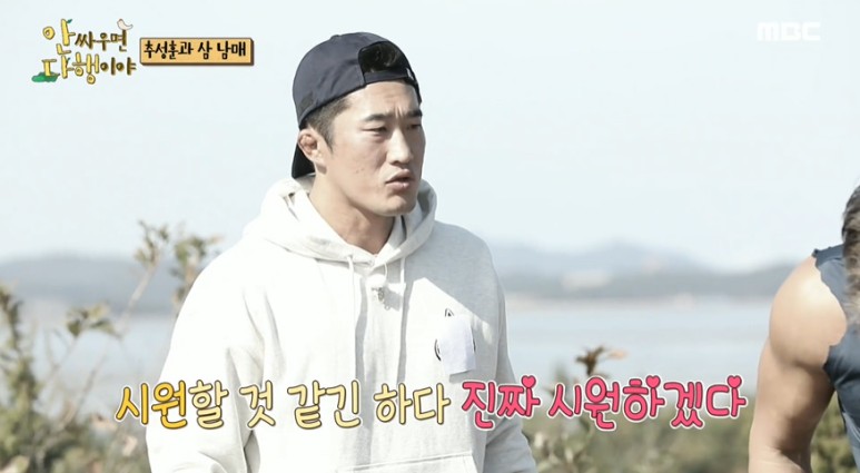김동현이 추성훈 옷차림이 시원해보여서 부럽다고함