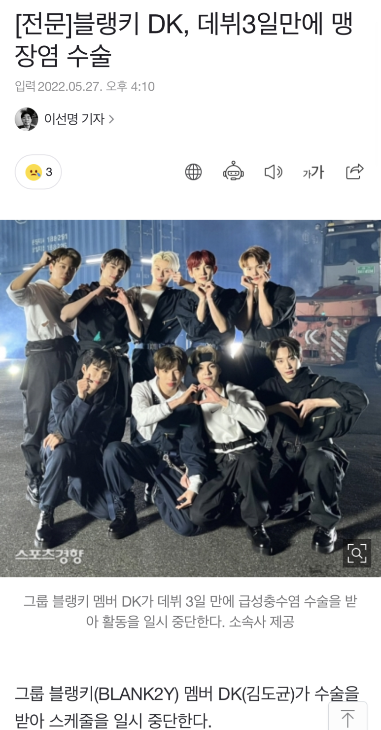 멤버 DK가 데뷔한지 3일만에 급성충수염이 와서 활동을 중단했었음 ㅠㅠ