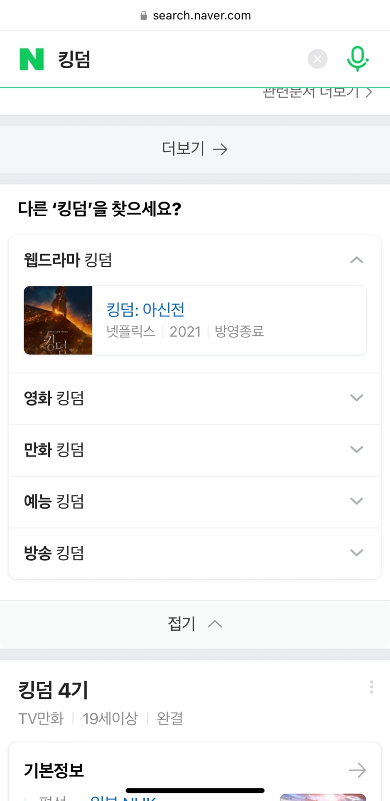 (실제로 네이버에 검색해도 드라마 킹덤만 뜨지 아이돌 킹덤은 뜨지않음)