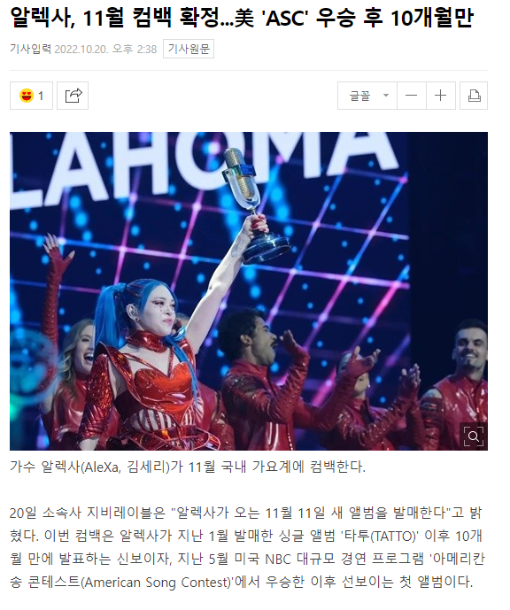 [알렉사] 드디어 국내 컴백한다는 미국 경연 우승자연예STORY 2022. 10. 21. 15:46728x90