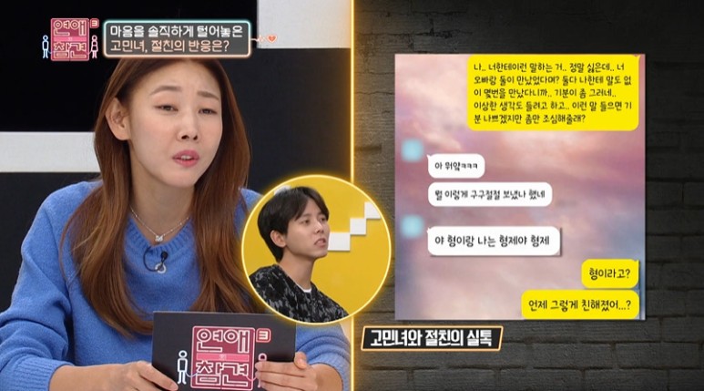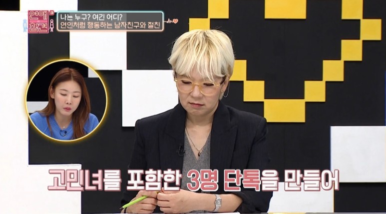고민녀와 15년지기 절친이 술을 마시고 있는 상황에서 남자친구를 불렀는데