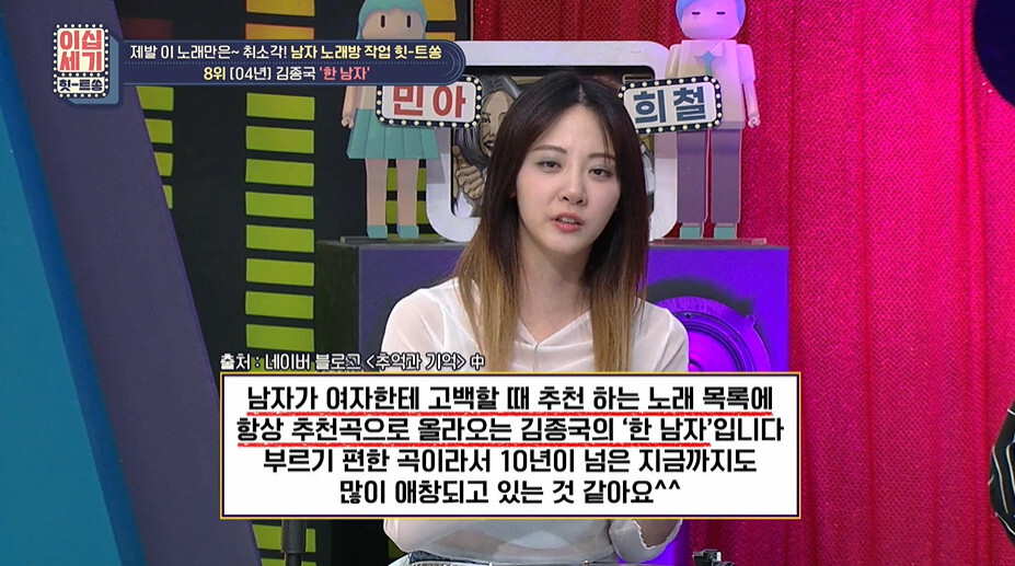 이십세기 힛트쏭에서 소개된 남자들이 노래방에서 부르면 안되는곡중에