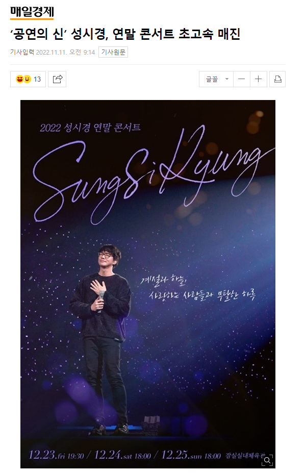 요즘 연말이라 콘서트 많이 하는듯
