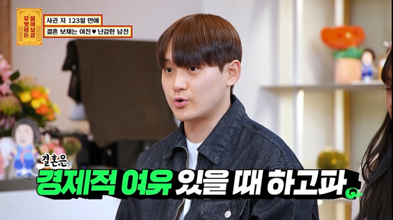 현실적인 문제 때문에 결혼은 아직 이르다고 생각하는 상황...