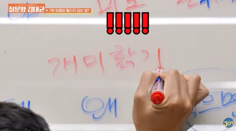 시작부터 김태균의 과거 맞춤법을 지적함 ㅋ
