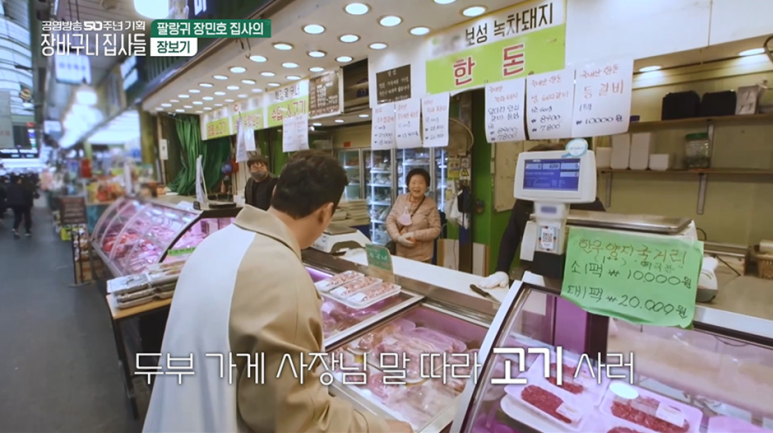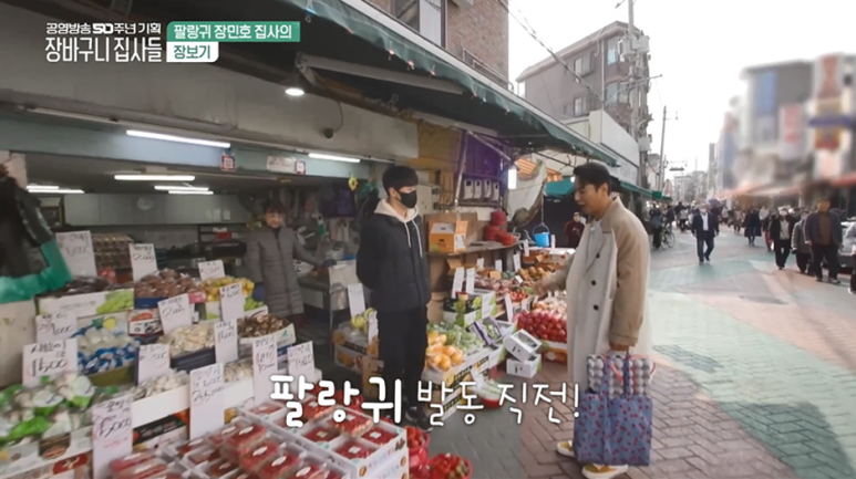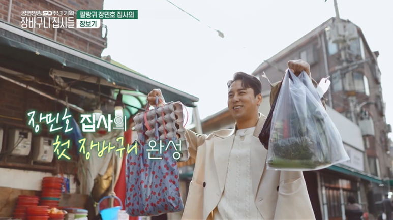 그렇게 첫화에선 장민호가 뚝불에게 줄 식재료를 장을봄