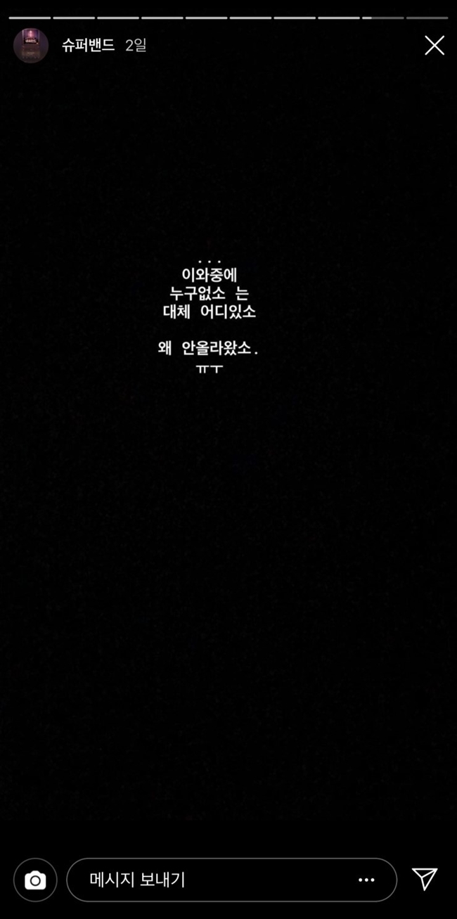 정려원이 지난주 슈퍼밴드 방송 끝나고인스타 스토리에 누구없소 음원 내달라는 글을 올렸음ㅇㅇ