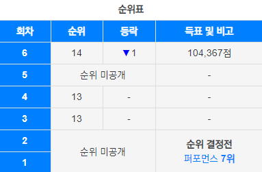 순위도 13위 고정이었다가 14위로 내려가 있는중
